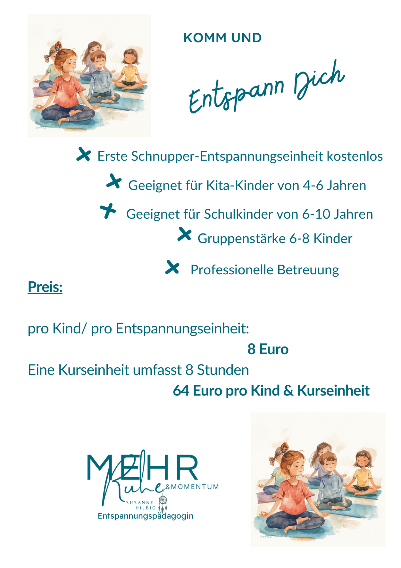 Meine Entspannungsangebote sind für Kinder in Kita und Grundschule im Alter von fünf - zehn Jahren gedacht.