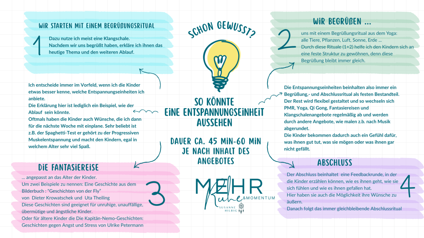 • den Kindern "Spaß an Entspannung" vermitteln.